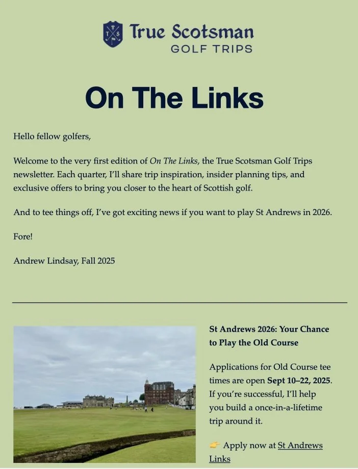 All golfers dream of playing golf in Scotland but many think it’s out of reach. The “True Scotsman” makes it possible — with custom trips designed around your group, your style, and your budget.